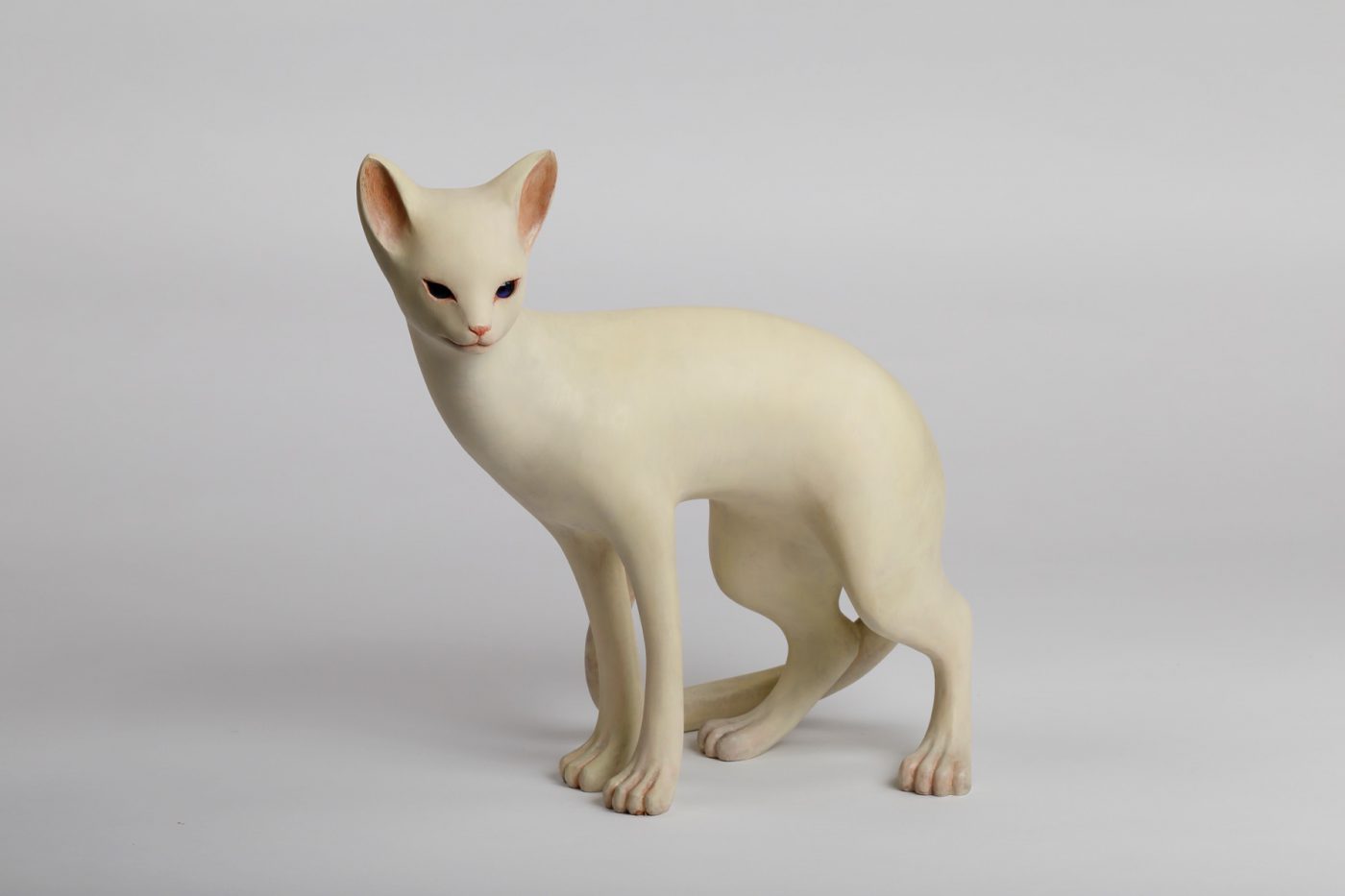 Wood caving, borosilicate glass, polychrome