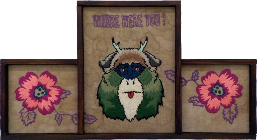 キャンバスにアクリルと刺繍