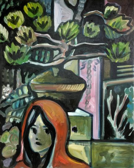 Bonsai and woman