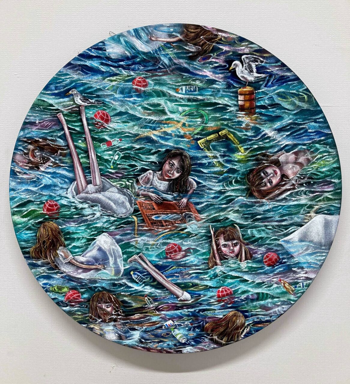 Oil, glitter and oil pastel on velvet