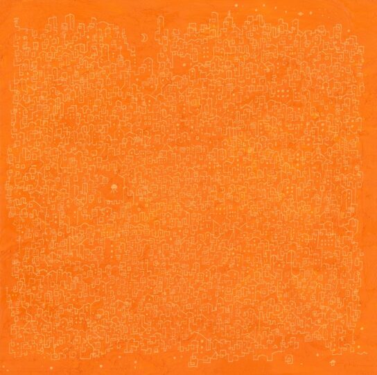 パネルに紙、アクリル、インク