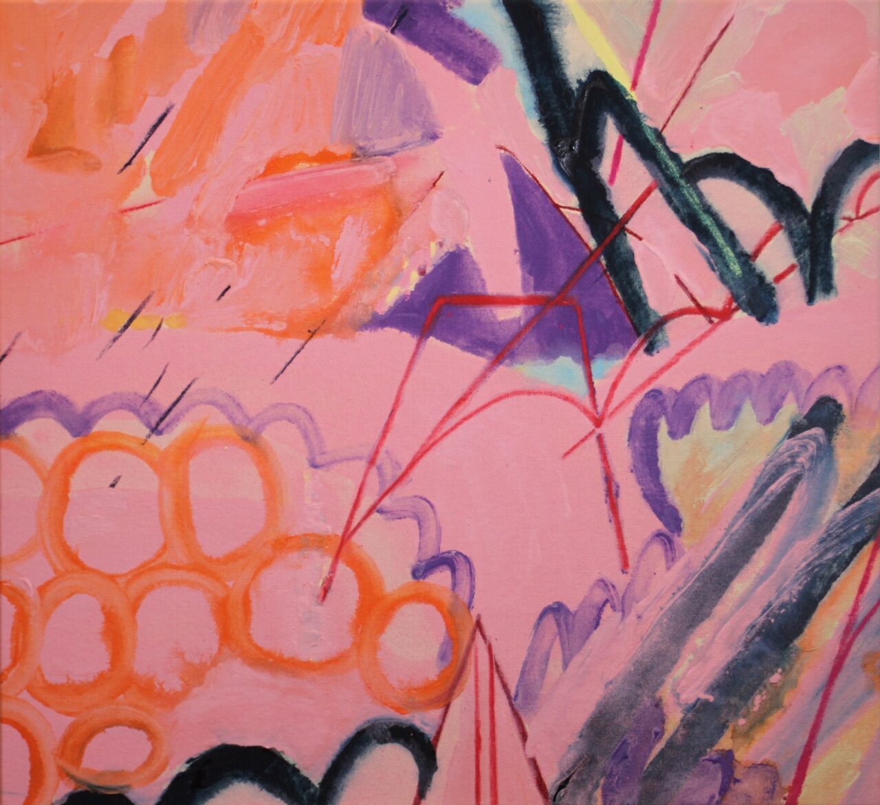 Acrylic, pastel, crayons on canvas 57×62cm 2023