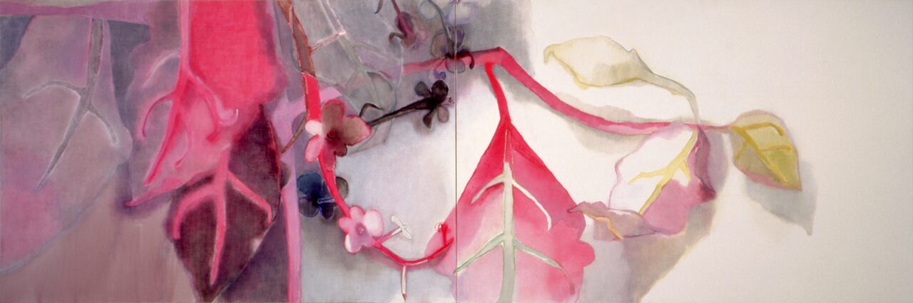 Born in 1969 in Osaka Prefecture, and completed graduate studies at Kyoto City University of Arts in 1995. Applying oil pastel by hand directly onto the surface, Oshie produces works depicting roadside grasses and flowers with a distinctive sensitivity to color, and was already attracting notice for this vivid sensibility while still a student. An encounter with the plant known as pokeweed led to a practice of drawing familiar weeds and wildflowers while holding them in hand and observing them closely, resulting in works that convey both affection for the subject and a sense of intimacy. In 2001, she received the Takashimaya Art Award, the VOCA Prize, and the Kyoto City Newcomer Artist Award in rapid succession. From 2003 to 2005, she lived in Belgium through the Agency for Cultural Affairs Program of Overseas Study for Upcoming Artists. While continually pursuing new themes and compositions, she has advanced her work with steady assurance.