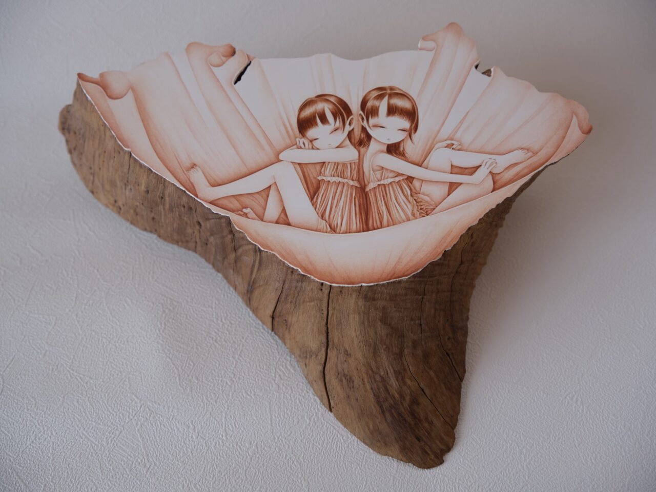 Acrylic, shell powder, cheesecloth on wood 29×39×6 cm 2025